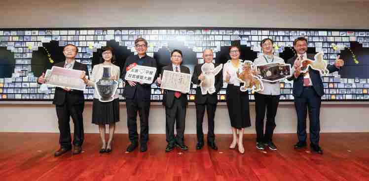 优游UB8携手创利空间为故宫建置的智慧文物互动导览墙及轮播墙,,今日正式启用。。。(左四:优游UB8新事业暨投资管理总部副总经理杨本豫、、、、右四:故宫博物院院长吴密察、、、右三:太极影音董事长黄宝云)