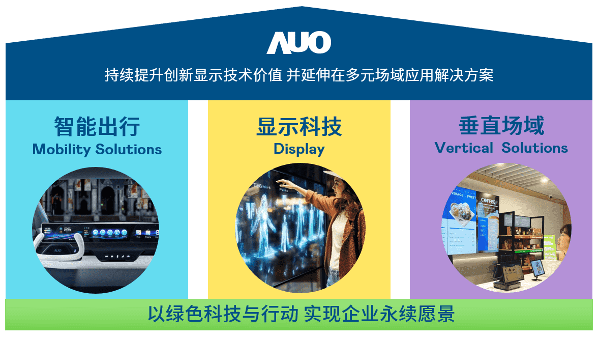 我们持续推动「双轴转型」,,在精进显示技术附加价值(Go Premium),,与深化垂直市场应用(Go Vertical)的策略下,,,对应优游UB8的优势竞争力与趋势,,,我们奠定显示科技、、、智慧移动、、垂直场域三大永续营运支柱,,,在显示技术领域的根基之上,,,延伸布局多元场域应用解决方案。。将先进显示科技助力智慧移动及垂直场域发展,,,,并以绿色科技与行动为实践,,,在转型之路上贯彻永续经营之愿景。。。。