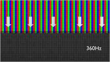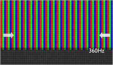 传统液晶驱动是从左到右单向进行,,,在画面更新速度愈来越愈快的情况下,,位于驱动线路末端的右下角区域,,,,画素的闸极来不及在短时间内获得足够电压,,,无法显示出正确的颜色资讯。。。 |