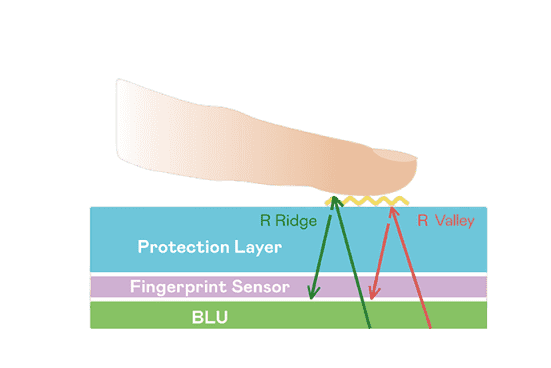 TFT 指纹扫描感测技术利用薄膜电晶体 (TFT) 当作光感测元件,,藉由非晶硅 (a-Si) 与低温多晶硅(LTPS)既有光电转换特性对不同波段光源进行吸收,,,,使感测 IC 读取阵列感测元件的光漏电差异,,,转换成数位灰阶影像。。