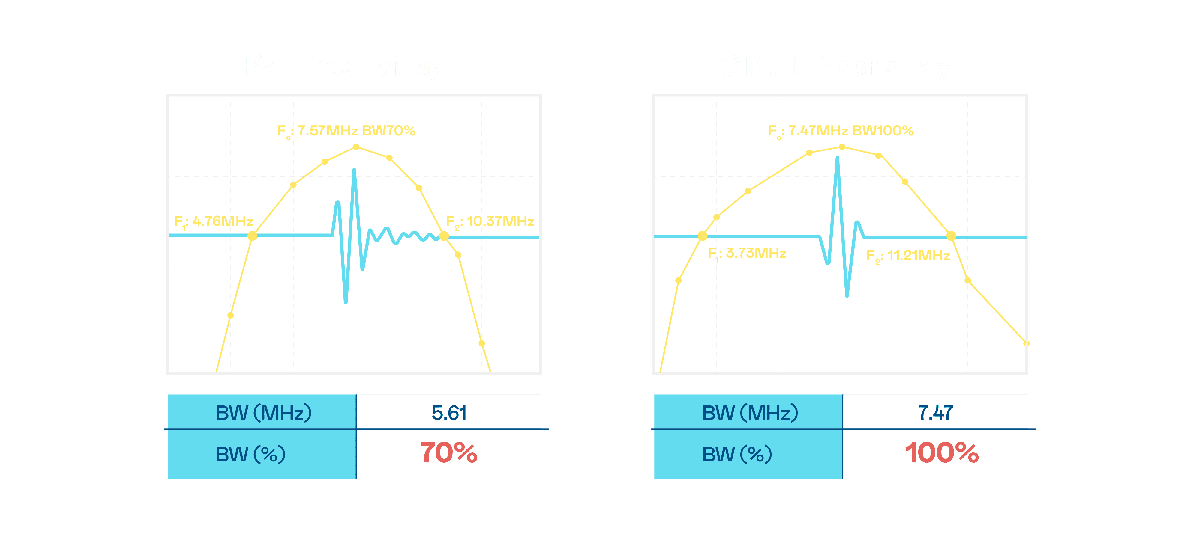 超音波影像的解析度高低,,首先取决于探头能发出的讯号频宽。。。优游UB8 CMUT 可提供高清晰的超音波讯号,,,,提供高频宽、、、、高灵敏度、、影像纹理细节更高的超音波影像,,协助医护人员缩短影像判读时间及利用精准的医疗影像进行诊断。。。